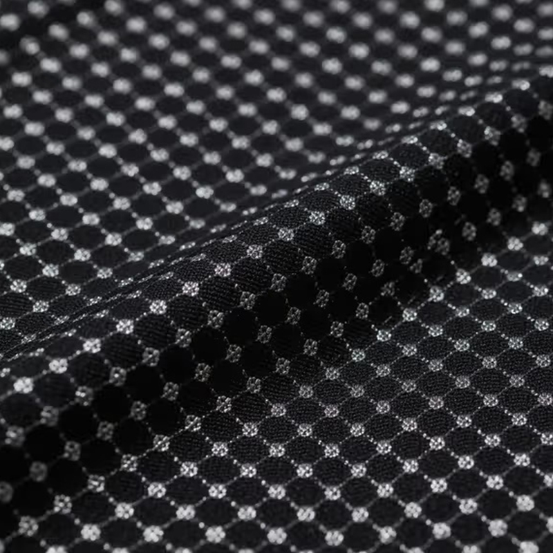 Le tissu Dot Mesh Birdseye adopte une structure unique de trous en maille à points. Par rapport au tissu à œil d'oiseau traditionnel, les trous du tissu à mailles à pois sont plus fins et plus réguliers. Cette conception innovante améliore considérablement la respirabilité et la fonction de transpiration du tissu, rendant la circulation de l'air plus fluide et la sueur s'évapore rapidement, gardant le porteur au sec et confortable. Que ce soit lors d'un exercice intense ou par temps chaud, le tissu en maille à pois peut empêcher efficacement la rétention de la sueur et offrir une expérience confortable idéale. En raison de sa respirabilité, de ses performances d'absorption de l'humidité et de transpiration, le tissu à mailles à pois est très approprié pour la production de vêtements de sport, de vêtements d'été et de vêtements décontractés quotidiens. La texture légère et le toucher confortable du tissu en maille à pois en font un choix idéal pour un port à long terme, adapté aux amateurs de sport et aux personnes qui aiment les activités de plein air. Qu'il s'agisse d'équipements sportifs tels que des vêtements de course, des pantalons de yoga, des vêtements de fitness ou des vêtements légers tels que des t-shirts et des shorts d'été, le tissu à pois en maille œil-d'oiseau peut offrir un confort ultime et éviter l'inconfort causé par un exercice à long terme ou un port à des températures élevées.