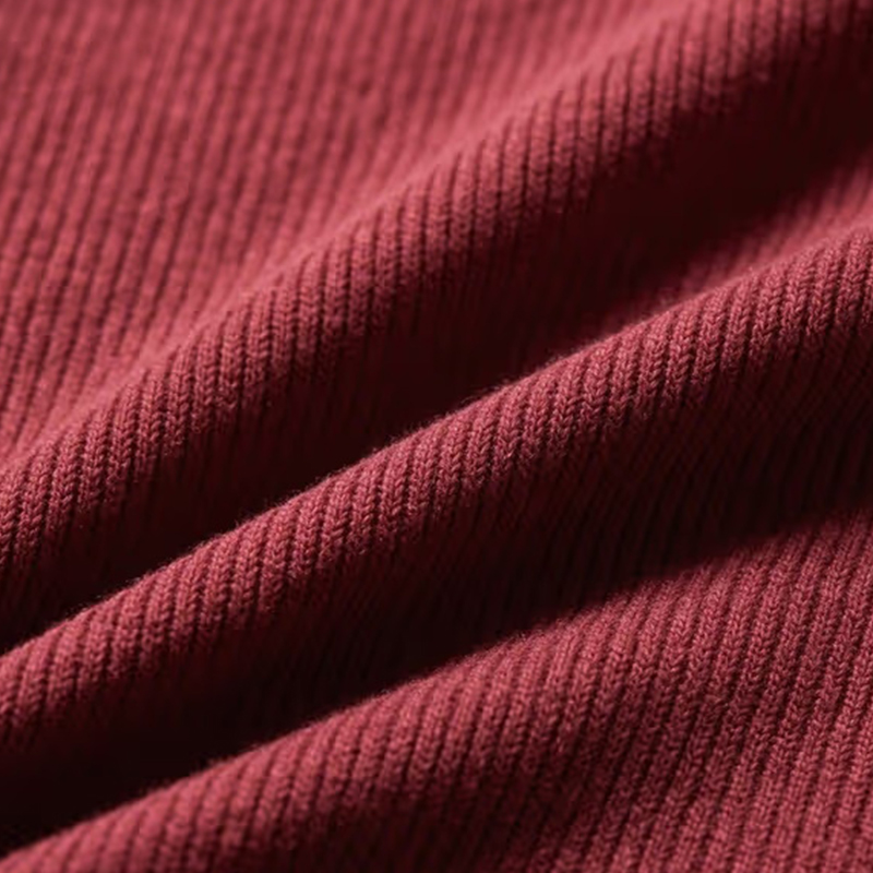 Le tissu en velours côtelé 1*1 est un tissu qui utilise un processus de tissage 1 aiguille vers le haut et 1 aiguille vers le bas, et la surface est recouverte de velours fin (velours fin), qui offre une excellente rétention de la chaleur et un toucher doux. Sa structure de tissage côtelé rend le tissu très élastique, s'adapte parfaitement à la peau et offre une expérience de port confortable, particulièrement adaptée à une utilisation pendant les saisons froides. La surface en velours du tissu est non seulement douce et délicate, mais améliore également le confort et peut efficacement retenir la chaleur et empêcher l'air froid de pénétrer. Ce tissu a une forte rétention de chaleur et convient aux vêtements d'hiver, en particulier aux cols de pulls et aux ceintures de leggings, offrant une chaleur et un soutien supplémentaires à ces pièces. Sa conception côtelée 1*1 donne au tissu une meilleure élasticité, permettant au tissu de se dilater et de se contracter librement, assurant ainsi l'ajustement et le confort une fois porté.